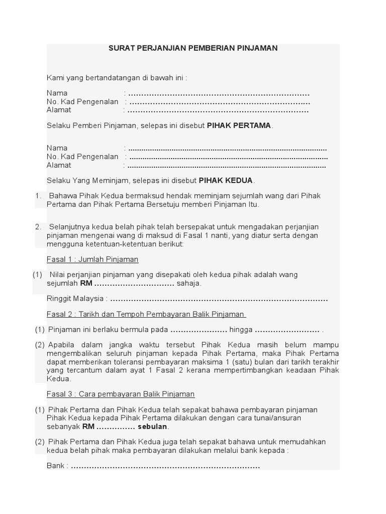 Contoh Surat Perjanjian Pinjaman Wang Dari Syarikat Gawe Cv
