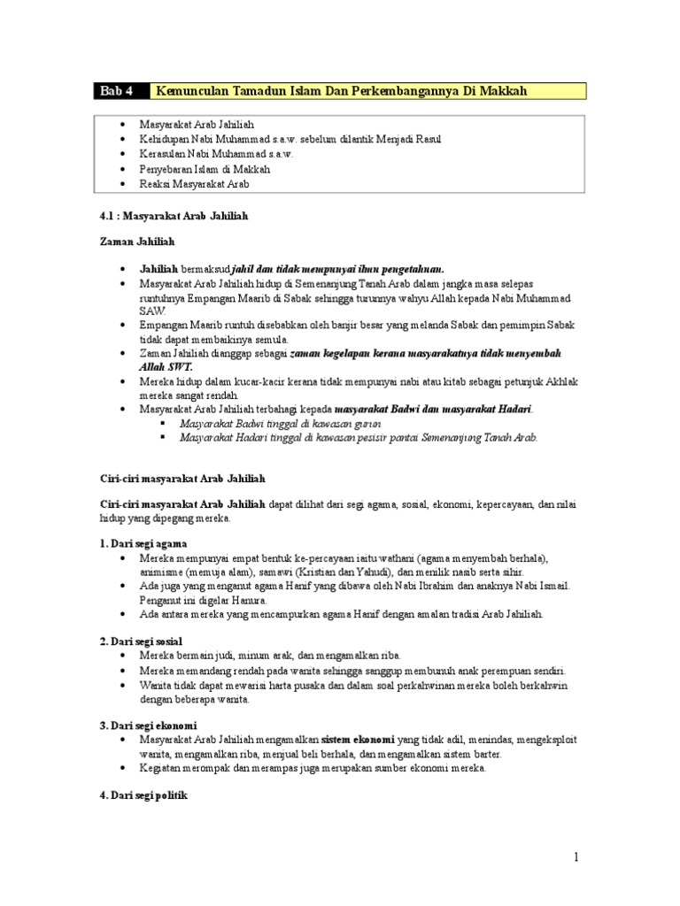 Ting 4 Bab 4 Kemunculan Tamadun Islam Dan Perkembangannya Di Makkah Doc