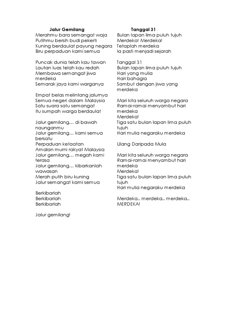 Tanggal 31 Lirik Lagu Kemerdekaan Malaysia