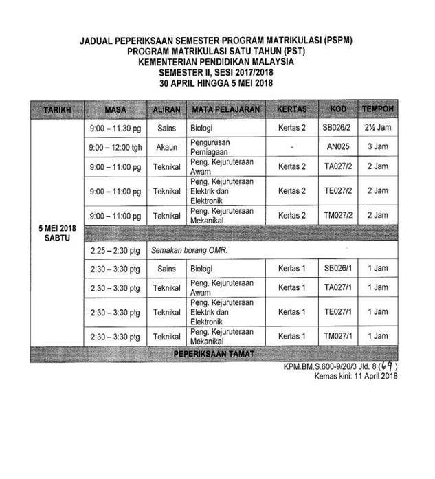 My Ekonomi Jadual Peperiksaan Semester Program Matrikulasi Pspm Semester Ii Sesi 2017 2018