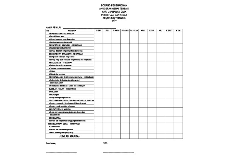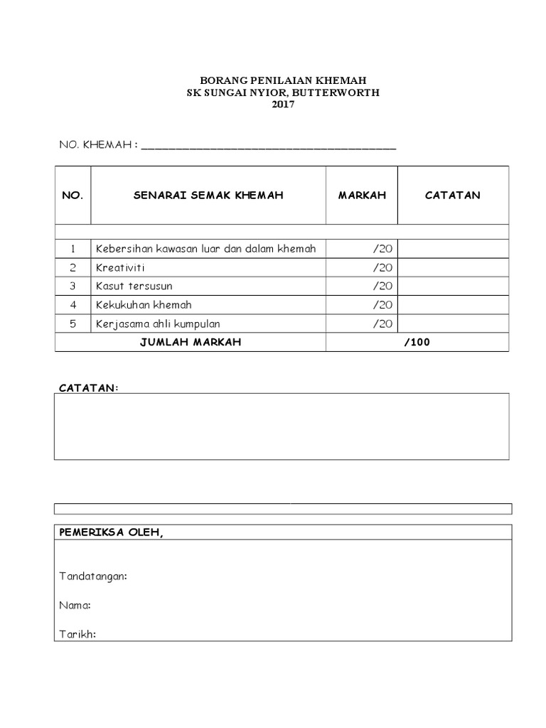 Borang Penilaian Khemah