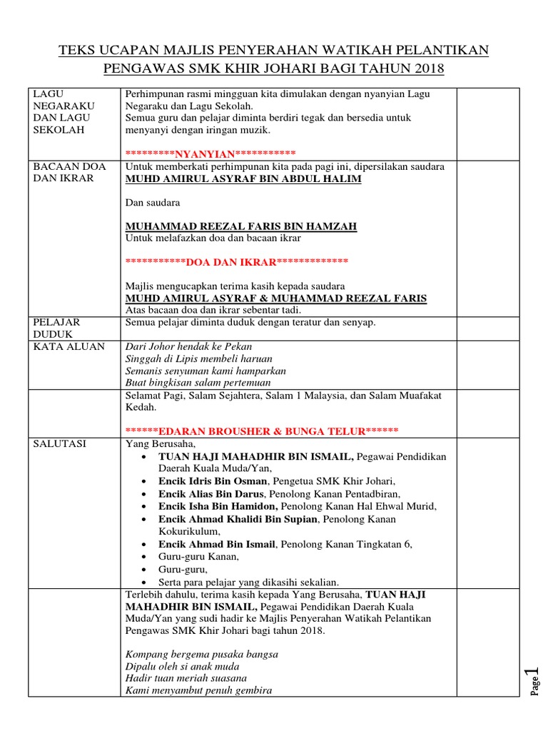 Teks Ucapan Majlis Penyerahan Watikah Perlantikan Pengawas Sekolah