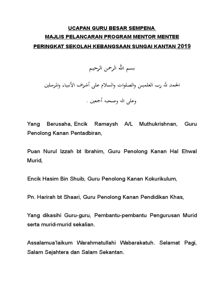 Ucapan Majlis Perlancaran Program Guru Penyayang Dan Mentor Mentee Tarikh