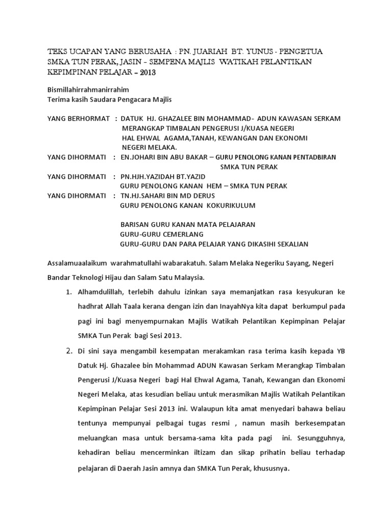 Doc Contoh Ucapan Wakil Murid Untuk Majlis Persaraan Linda Husin Academia Edu
