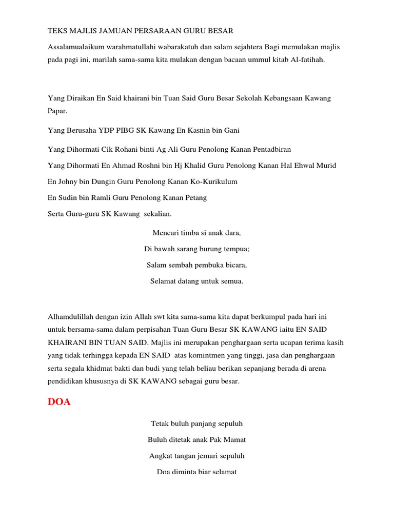 Teks Majlis Jamuan Persaraan Guru Besar Docx