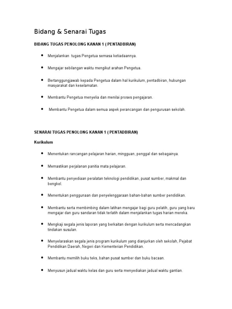 Doc Ii Senarai Tugas Guru Penolong Kanan Kokurikulum Fauziah Idris Academia Edu