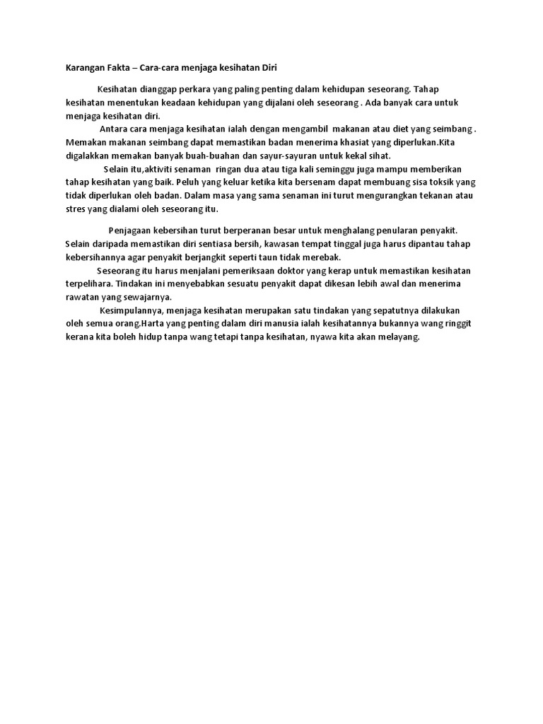Karangan Fakta Cara Cara Menjaga Kesihatan Diri