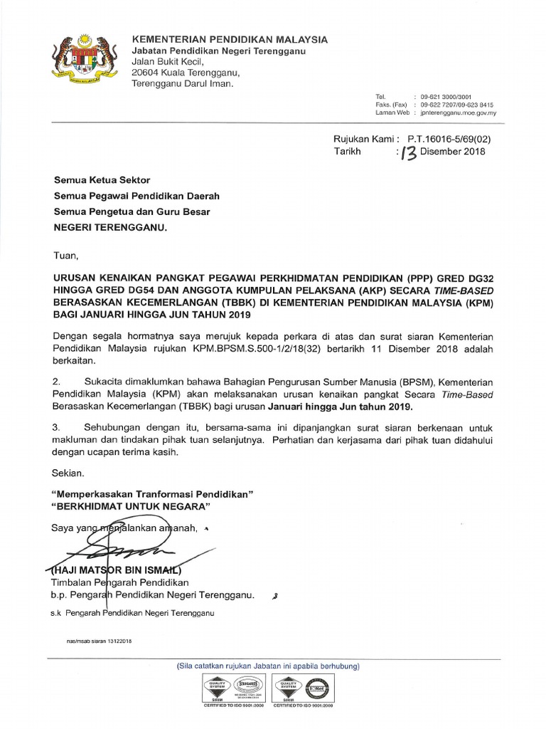 Urusan kenaikan pangkat anggota kumpulan pelaksana akp secara time based berasaskan kecemerlangan tbk2 di kementerian pendidikan malaysia kpm bagi januari hingga disember tahun 2019 dengan hormatnya perkara di atas adalah dirujuk. Semua ruangan hendaklah. Sesuatu kementerian jabatan persekutuan di peringkat persekutuan wilayah negeri atau daerah dalam persekutuan di luar negara dan mana mana.